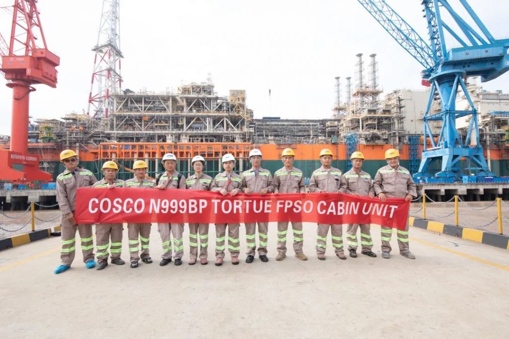 1月19日,由华南建材参与承建的世界最大天然气处理浮式生产储卸油船N999 FPSO完成交付。这是中国船企首次为欧洲一流石油公司非洲项目建造的浮式生产储卸油船,也是世界上天然气日处理量最大的平台。